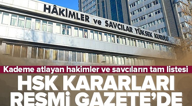 Resmi Gazate'de yer alan açıklamada, "2802 sayılı Hakimler ve Savcılar Kanununun 21'inci maddesine göre 2 yıllık yükselme sürelerini aldıkları aylıkta Ağustos 2023 dönemi sonuna kadar bitiren Adli Yargı Hakim, Cumhuriyet Başsavcı ve Savcıları ile İdari Yargı Hakimlerinin adlarını belirtir listeler 2802 sayılı Hakimler ve Savcılar Kanununun 22'nci maddesi gereğince aşağıda gösterilmiştir. Sürelerini doldurdukları halde bu listede adlarını bulamayanlar ilan tarihinden itibaren otuz gün içinde Hakimler ve Savcılar Kuruta yazılı olarak başvurmak sureti ile durumlarının yeniden incelenmesini isteyebilirler" ifadeleri yer aldı..